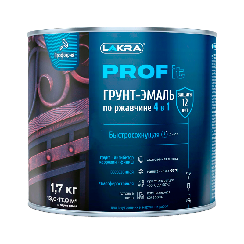 Грунт-эмаль по ржавчине 4в1 быстросохнущая Лакра PROF IT База С, 1,7 кг