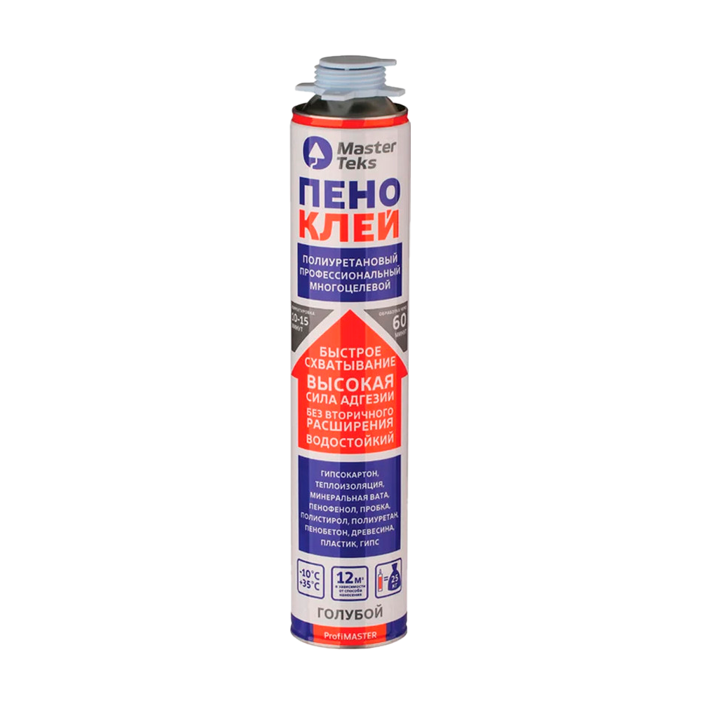 Однокомпонентный быстросохнущий высокопроизводительный профессиональный полиуретановый пено-клей в аэрозольном баллоне для наружных и внутренних работ. Полимеризуется за счет влаги воздуха. Подходит для всех видов строительных и отделочных материалов.