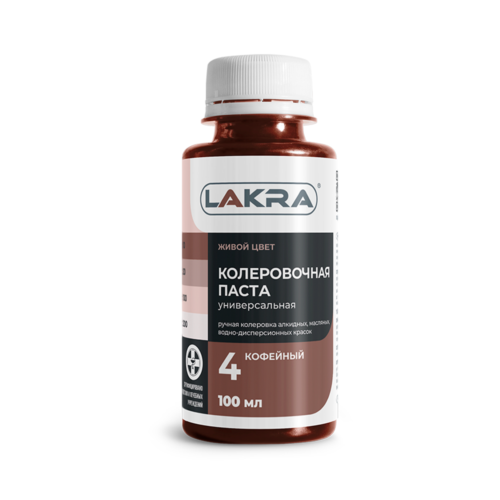 Универсальная колеровочная паста ЛАКРА применяется для колеровки алкидных, масляных, водно-дисперсионных красок, известковых, цементных растворов, затирок для швов и других составов. Подходит для внутренних и наружных работ.