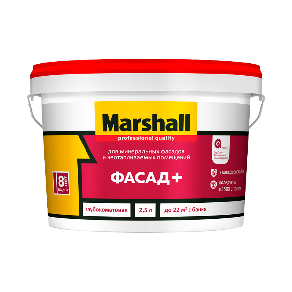 Краска Marshall ФАСАД+ водно-дисперсионная глубокоматовая база BC ( 2,5л)