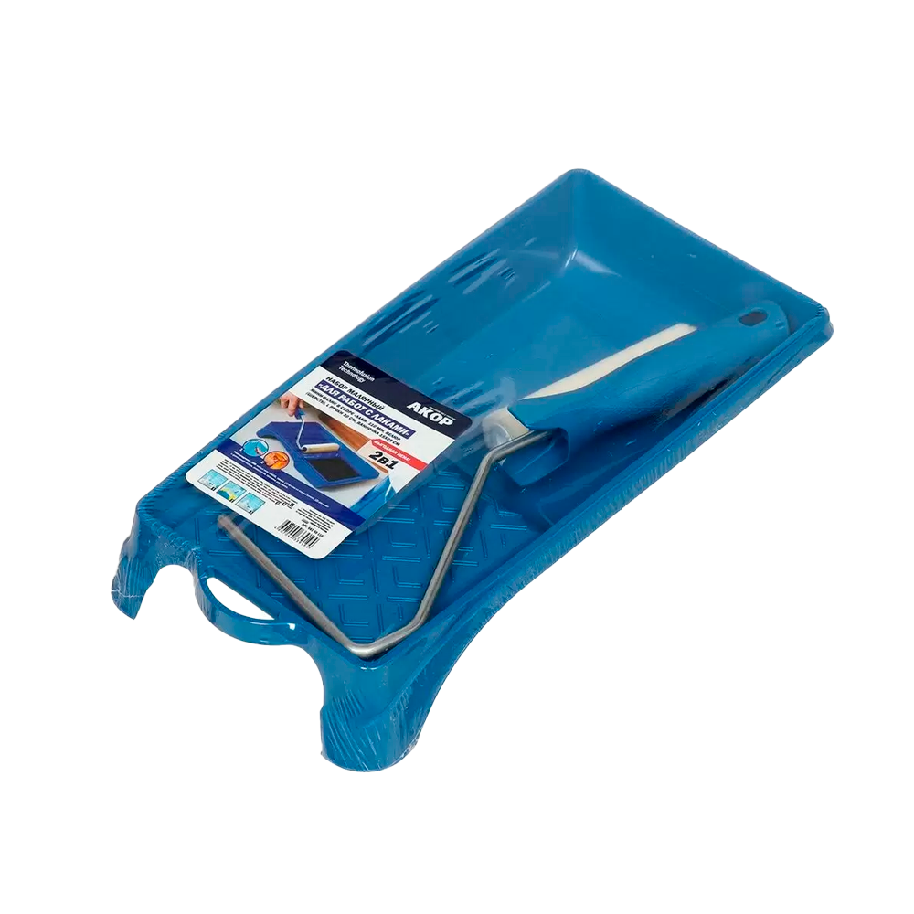 Купить всё и сразу? Легко! Набор малярный «АКОР» поможет осуществить задуманные переделки. Валик - нужный инструмент для строительства. Он поможет вам в покраске помещения, наклеивании обоев, в ином деле, связанном с ремонтом. Лоток предназначен для смешения строительной химии, выполнен из пластика, и его размер соответствует параметрам валика.