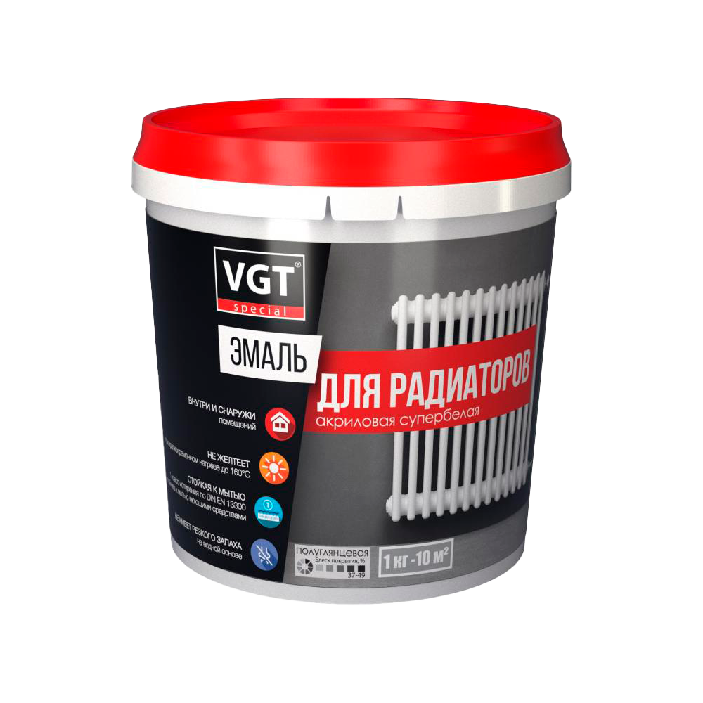 Предназначена для финишного окрашивания радиаторов, труб водяного отопления и водоснабжения в бытовых и строительных условиях. Изготовлена на основе самосшивающейся акриловой дисперсии, обеспечивающей более качественные характеристики по сравнению с другими обычными полимерами.