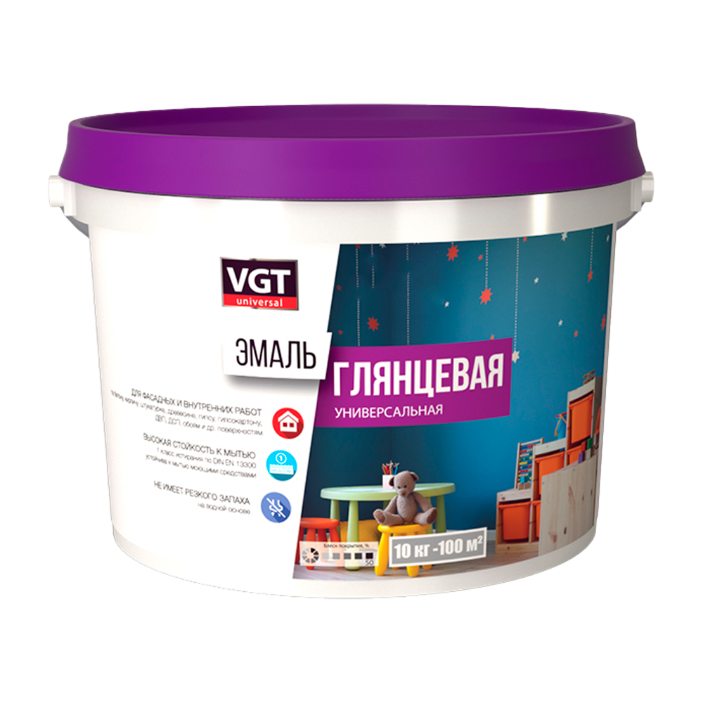 Эмаль для наружных и внутренних работ по всем видам поверхностей, а так же для окраски обоев. Рекомендуется для использования в жилищном и гражданском строительстве, в том числе для окраски помещений в детских и лечебно-профилактических учреждениях.